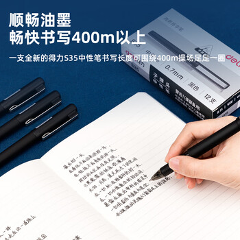 得力 中性笔 水笔签字笔 0.7mm子弹头磨砂笔杆商务办公记事笔学生日常考试书写 黑色12支/1盒装S35