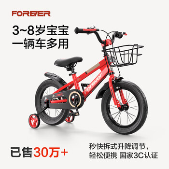 永久(FOREVER)儿童 自行车3-6岁童车小孩单车山地车脚踏车带辅助轮14寸红色