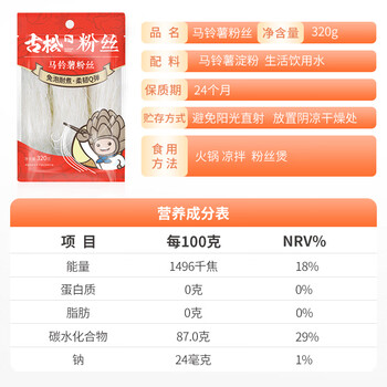 古松粉丝320g 马铃薯粉丝土豆粉条火锅凉拌酸辣粉丝煲食材 二十年品牌