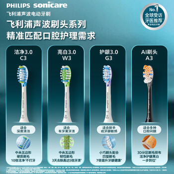 飞利浦(PHILIPS)电动牙刷头官方原装适配钻石7/9/AI系列刷柄清洁护龈亮白 尊享三合一型刷头 1支装HX9091/67白色