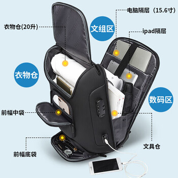 班歌BANGE 背包男双肩包大容量17.3英寸电脑包时尚潮流多功能大学生书包防盗密码锁旅行包 BG-7216Plus
