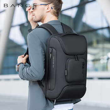 班歌 双肩包男大容量旅行包大学生书包立体有型17吋电脑背包BG7216P黑