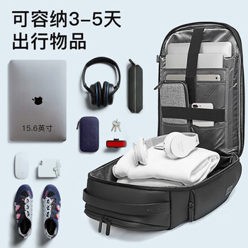 班歌 双肩包男商务旅行包大学生书包15.6吋电脑包简约定型背包礼物黑