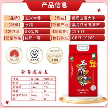 五米常香五常大米 10斤 新米 东北大米 当季 真空装