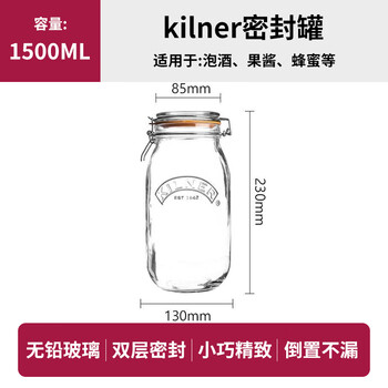 kilner玻璃密封罐食品级茶叶罐储物罐 果酱蜂蜜罐泡菜泡酒容器 1500ml