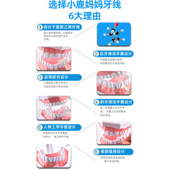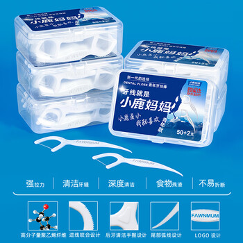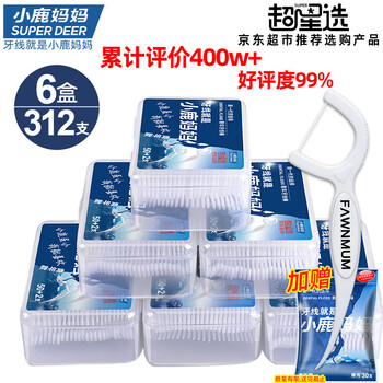 小鹿妈妈 专业洁齿牙线棒齿缝青年款牙签52支/盒 6盒312支