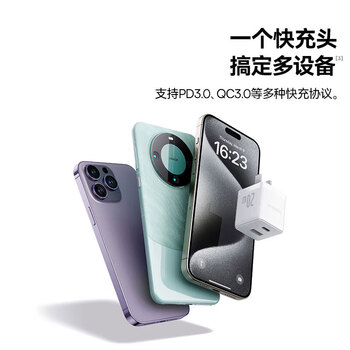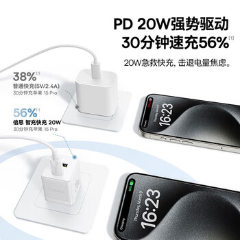 倍思苹果充电器iPhone15/14充电头PD20W多口快充头USB/Type-C插头适用iPad/13ProMax华为小米手机平板