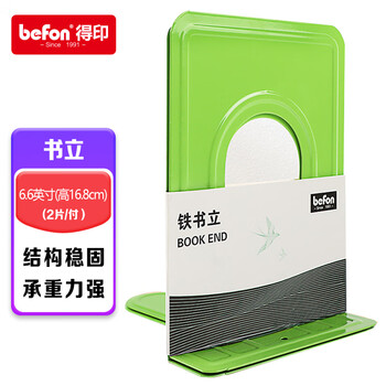 得印6.6英寸(高16.8cm)金属铁书立架8055办公书靠书籍挡靠夹书架夹办公用品绿色2片/付