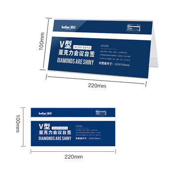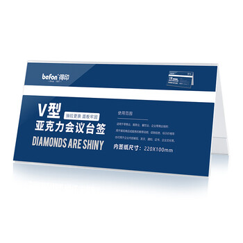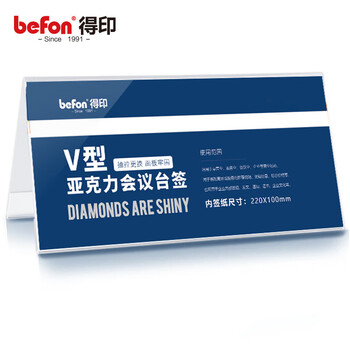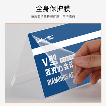 得印(befon)亚克力桌牌席卡座位牌 双面V型台卡台签 三角会议牌高清桌签台牌水牌展示牌 220*100mm单个装7737