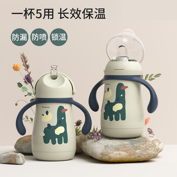 taoqibaby婴儿保温杯吸管奶瓶宝宝喝水杯学饮杯316不锈钢小学生上学杯