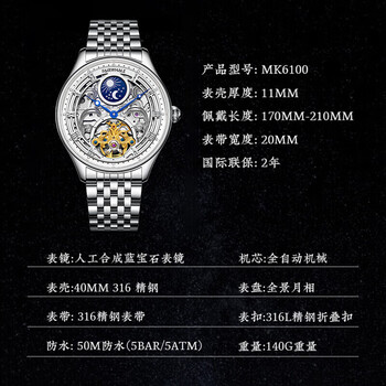 马克华菲(MARK FAIRWHALE)雕花手表男自动机械手表防水十大名表腕表国表生日礼物送老公