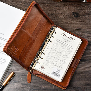 Filofax记事本英国进口高端笔记本拉链包真牛皮复古活页手帐商务办公手包款Lockwood系列A6棕色021692