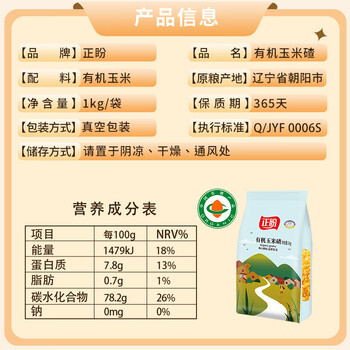 正盼 有机玉米碴1kg/袋