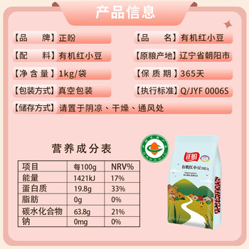 正盼 有机红小豆2斤/袋 红豆 小红豆 豆汤 豆馅 杂粮粗粮 真空包装