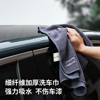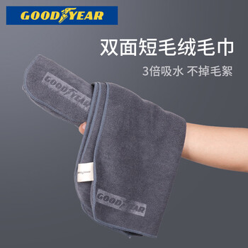固特异(Goodyear)洗车毛巾擦车抹布不掉毛双面高密短毛绒吸水强加厚2条