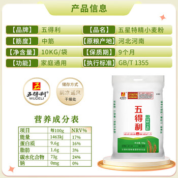 五得利面粉五星特精小麦粉20斤 通用拉面白面