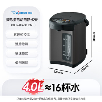 象印(ZO JIRUSHI)电水壶 日本进口 微电脑 电动给水五段控温4L容量 CD-NAH40C-BM 金属黑