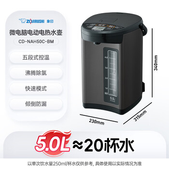 象印(ZO JIRUSHI)电水壶 日本进口 微电脑 电动给水五段控温5L容量 CD-NAH50C-BM 金属黑