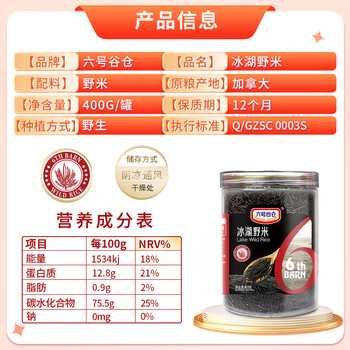 六号谷仓严选红标加拿大进口冰湖野米1号2号3号菰米松针米黑米杂粮400g
