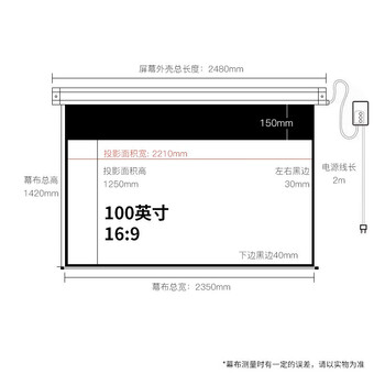悟印像100英寸16:9 电动幕布长焦投影机幕布家用办公投影仪高清白塑幕布150度金属外罩H8799