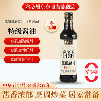 六必居原酿酱油【0添加 特级酱油】480ml加赠20ml 老字号 点蘸凉拌生抽
