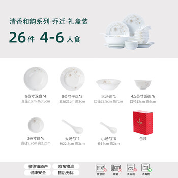 景德镇(jdz)陶瓷餐具整套家用碗盘餐具高温白瓷高档乔迁送人春节礼品清香和韵