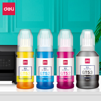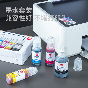 得力(deli)GT52/53 适用惠普HPGT51\53\52墨水5820 418 419 410 319 310 GT-53XL/52四色大容量喷墨打印机135ML+70ML
