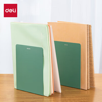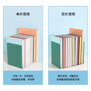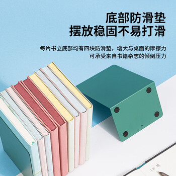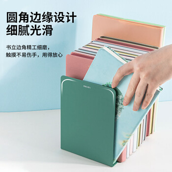 得力(deli)18cm高简约金属桌面桌面书立置物架书收纳桌上书架 桌上书籍挡靠夹 2片/ 绿色78650