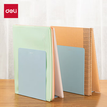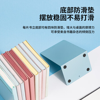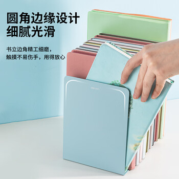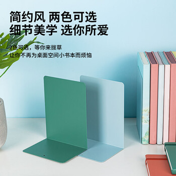 得力(deli)18cm高简约金属桌面桌面书立置物架书收纳桌上书架 桌上书籍挡靠夹 2片/ 浅绿78650