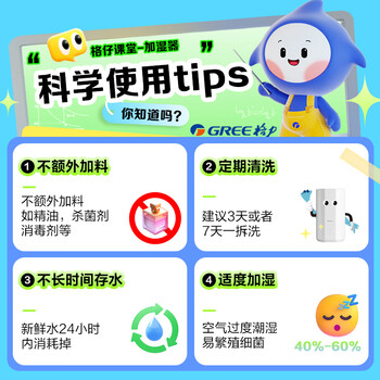 格力(GREE)加湿器家用婴儿静音卧室床头小巧 桌面落地空气加湿器大雾量办公室宿舍 除菌有雾空调加湿(40X71)