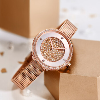 飞亚达(FIYTA)手表女 倾城系列石英锆石表圈金色满天星米兰带 节日礼物送女友