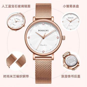 罗西尼(ROSSINI)手表女款 女士手表送女友时尚石英表雏菊白盘米兰带517776