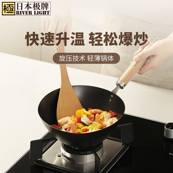 RIVER LIGHT日本极牌无涂层铁锅炒锅家用多功能炒菜锅电磁炉燃气灶通用