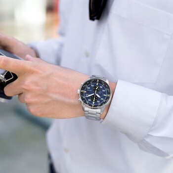 西铁城(CITIZEN)手表男日韩表光动能三眼蓝盘日显钢带商务送男友礼物CA0690-88L