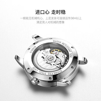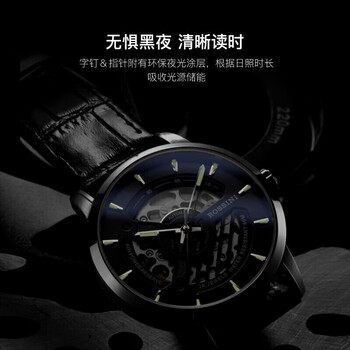 罗西尼(ROSSINI)手表男款 生日礼物夜光镂空机械表黑盘皮带619909