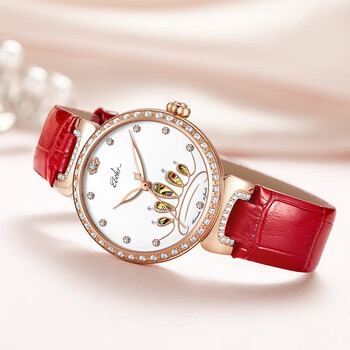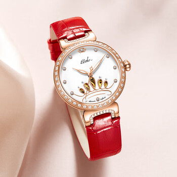 依波(EBOHR)手表女蝶恋花皇冠镂空节日礼物红皮带女士生日礼物机械表3653024