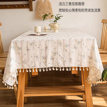艾薇田园桌布防水棉麻餐桌布艺长方形茶几台布防尘盖布140*180丁香花