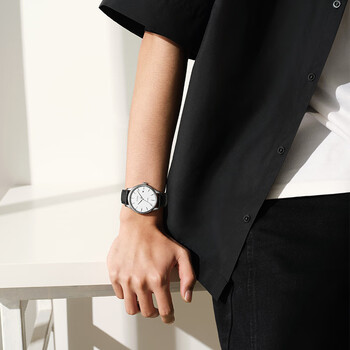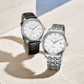 飞亚达(FIYTA)经典系列 日历白盘黑皮带自动男士机械手表 商务简约节日生日礼物