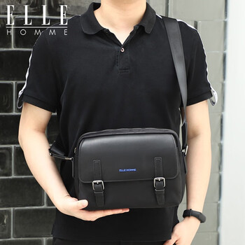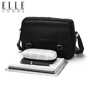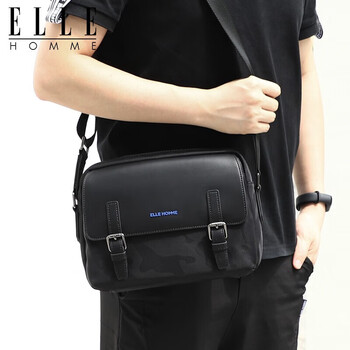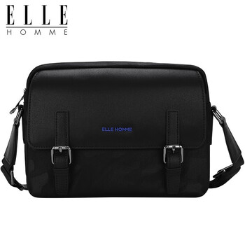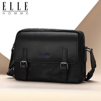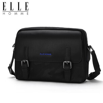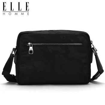 ELLE HOMME男士单肩包 迷彩尼龙帆布斜挎包 防泼水时尚休闲手机包大容量男包EA188203831黑色生日礼物送男友