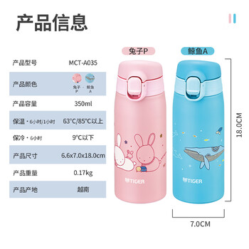 虎牌(TIGER)轻量便携不锈钢卡通保温水杯MCT-A035-AT蓝色350ML