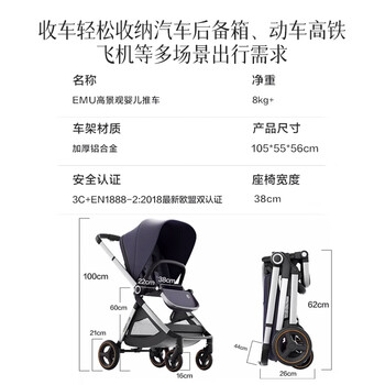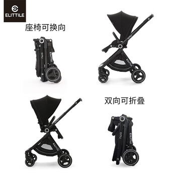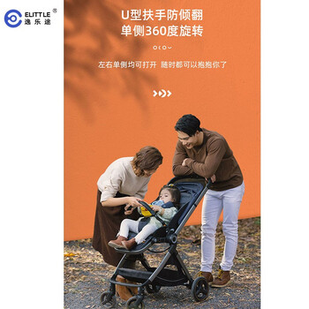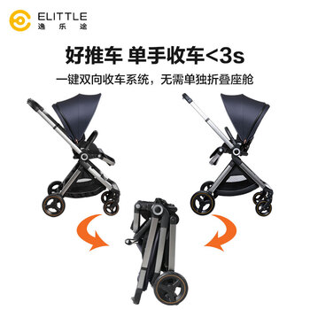 elittle逸乐途婴儿车0-3岁用折叠可坐可躺可转向高景观遛娃推车EMU欧版靛蓝色