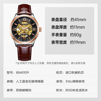 雷诺(RARONE)军舰系列潮流男士手表全自动机械表全景镂空腕表盘 生日礼物