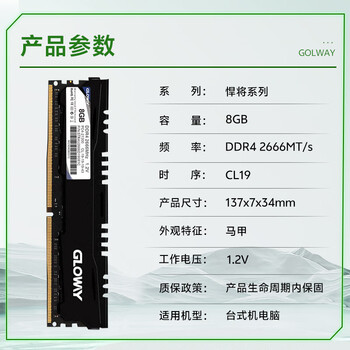 光威(Gloway)8GB DDR4 2666 台式机内存条 悍将 马甲条 精选颗粒 CL19