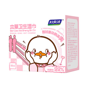 妇炎洁 抑菌免洗本草卫生湿巾 28片*3盒 私护私处清洁姨妈期湿厕纸便携