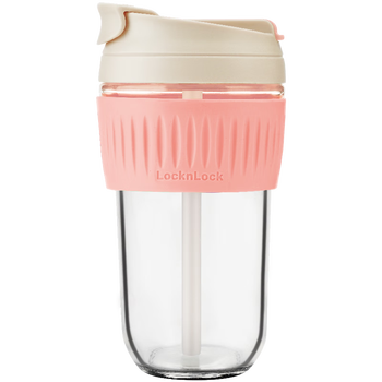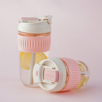 乐扣乐扣(LOCK&LOCK)咖啡杯耐热玻璃水杯子男女学生便携式双饮吸管杯随手杯500ML粉色