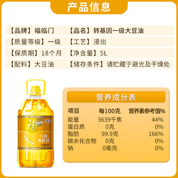 福临门食用油 一级大豆油5升植物油 中粮出品 新老包装随机发货