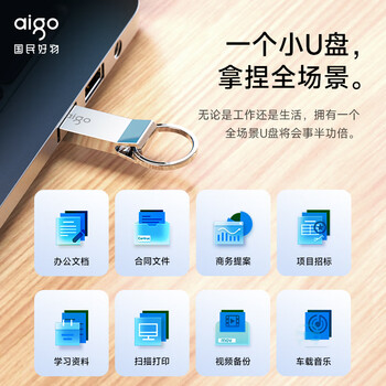 爱国者(aigo)8GB USB2.0 U盘 U210 招投标金属企业定制u盘 车载办公小容量U盘