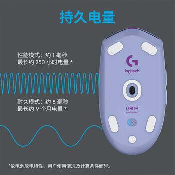 罗技(G)G304 LIGHTSPEED无线鼠标 游戏鼠标 轻质便携 鼠标宏 绝地求生FPS英雄联盟吃鸡 生日礼物 紫色