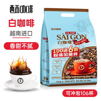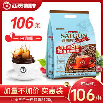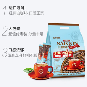 西贡越南进口速溶咖啡三合一白咖啡100条+6条实惠装