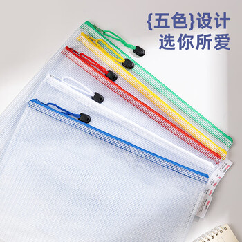 得力(deli)10只A4透明网格拉链袋 资料小学生科目分类文件袋 票据试卷收纳 文件保护 颜色随机63479